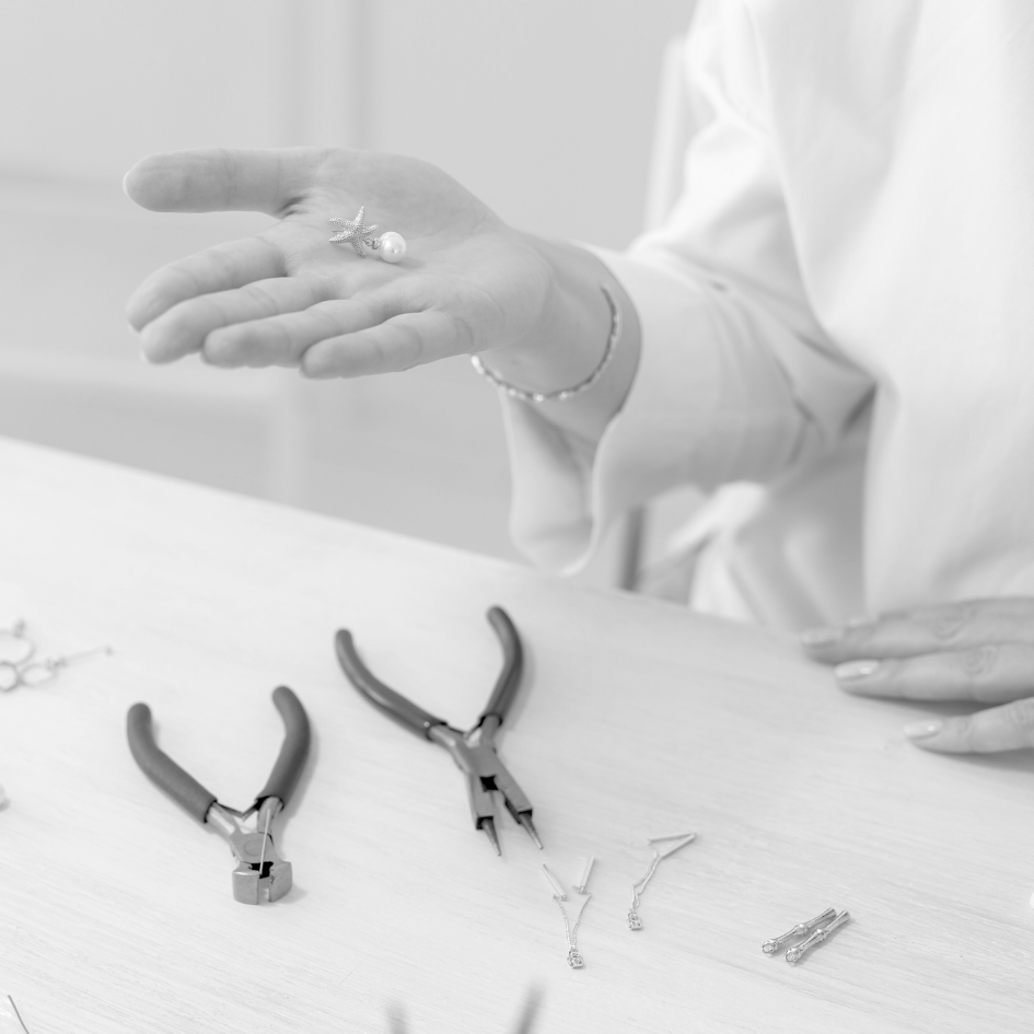 We handcraft and design our pearl jewelery in our workshop in Aarhus. We use precious metals and natural freshwater pearls to ensure good and high quality. Each pearl is handpicked and unique in its shape and size - just like the unique women who wear them.
