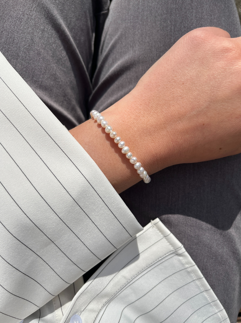 The Philine Pearl Bracelet is a simple and feminine bracelet with its fine and differently shaped freshwater pearls. The pearl bracelet can give your look a stylish and feminine touch.