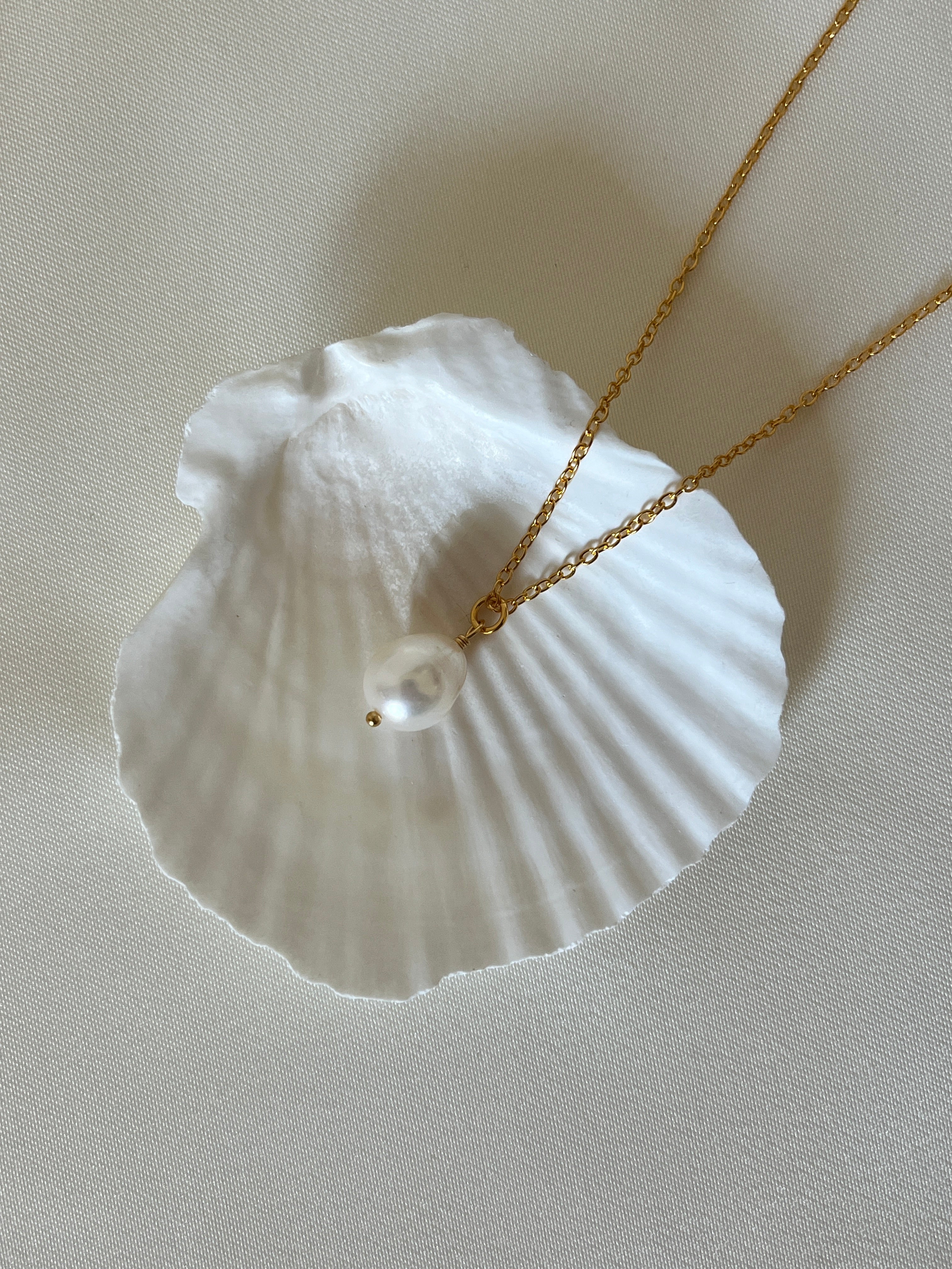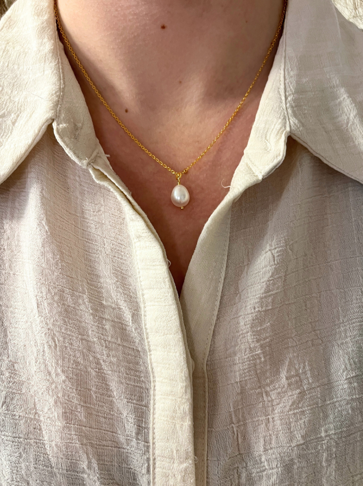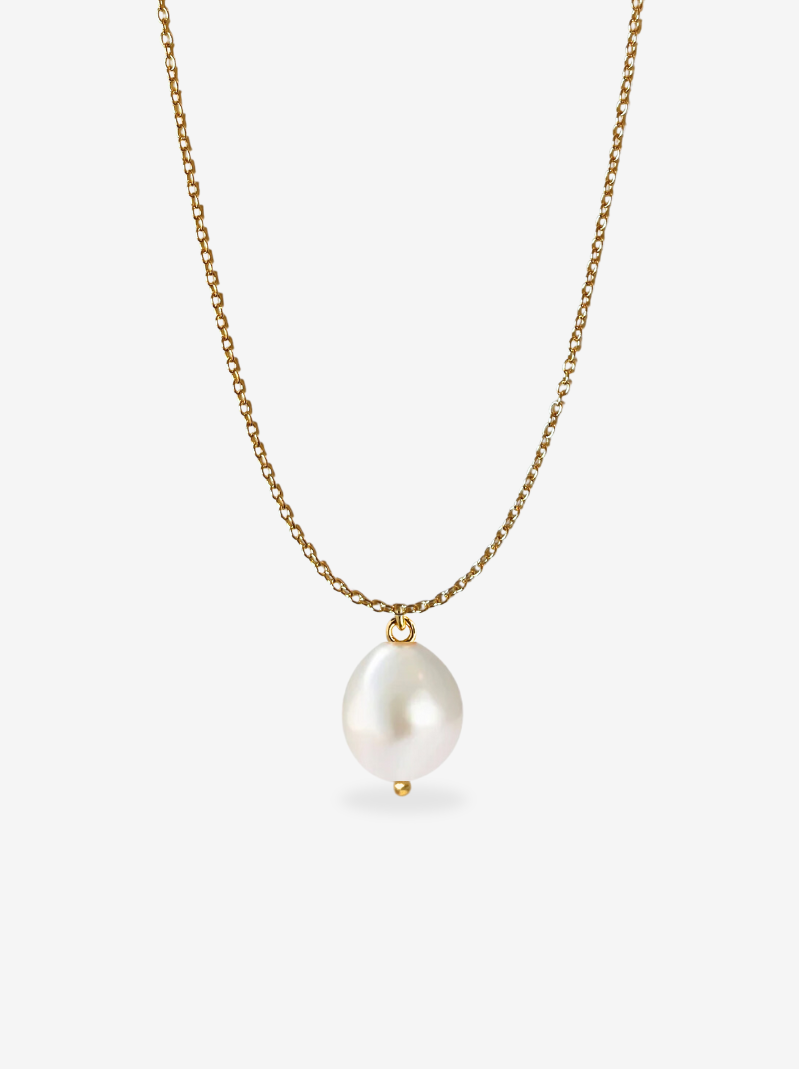 Elegant og feminin forgyldt sterling sølv halskæde med et ferskvandsperlevedhæng.