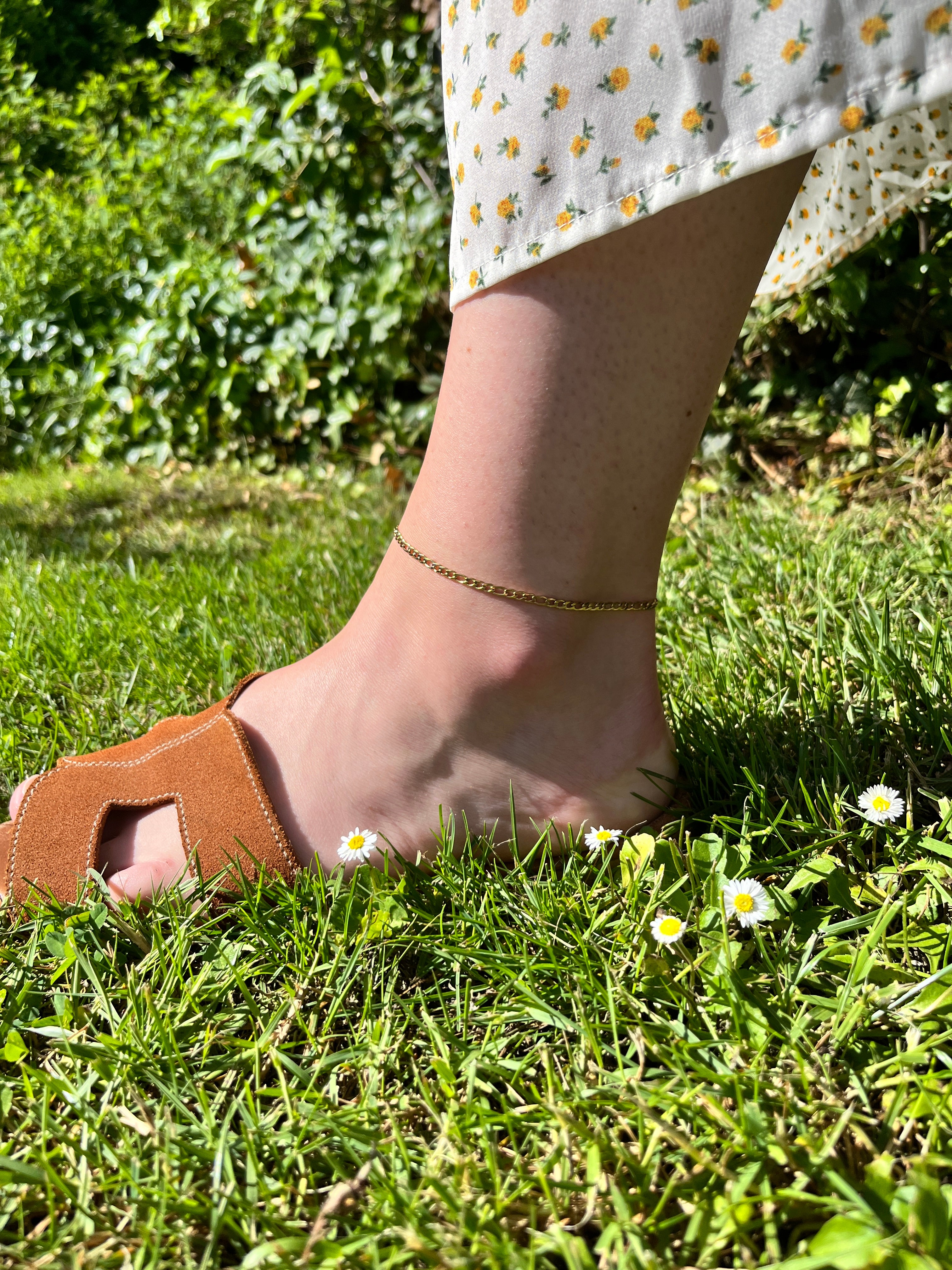 En smuk og smal figaro kæde, der sidder smukt om anklen. Perfekt til sommerens outfits.