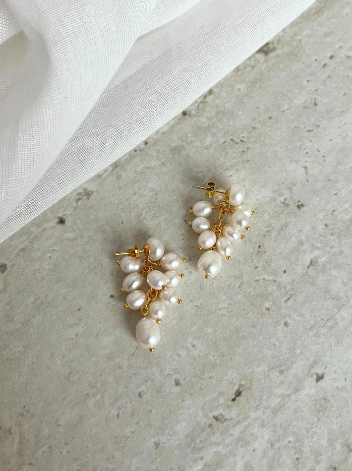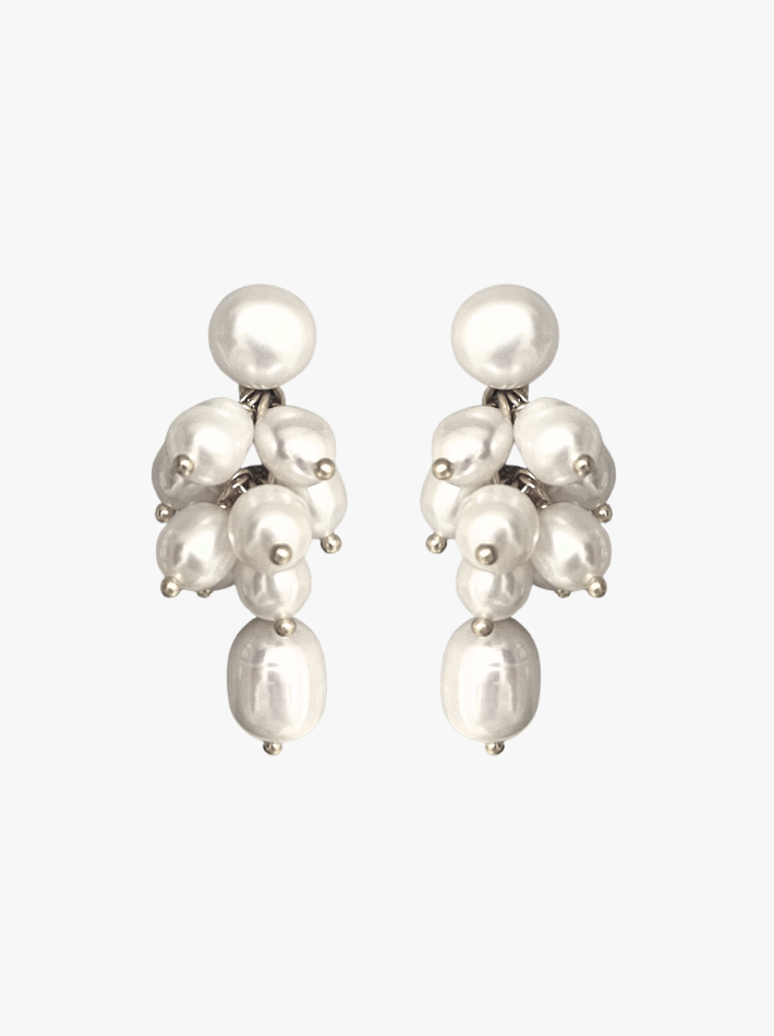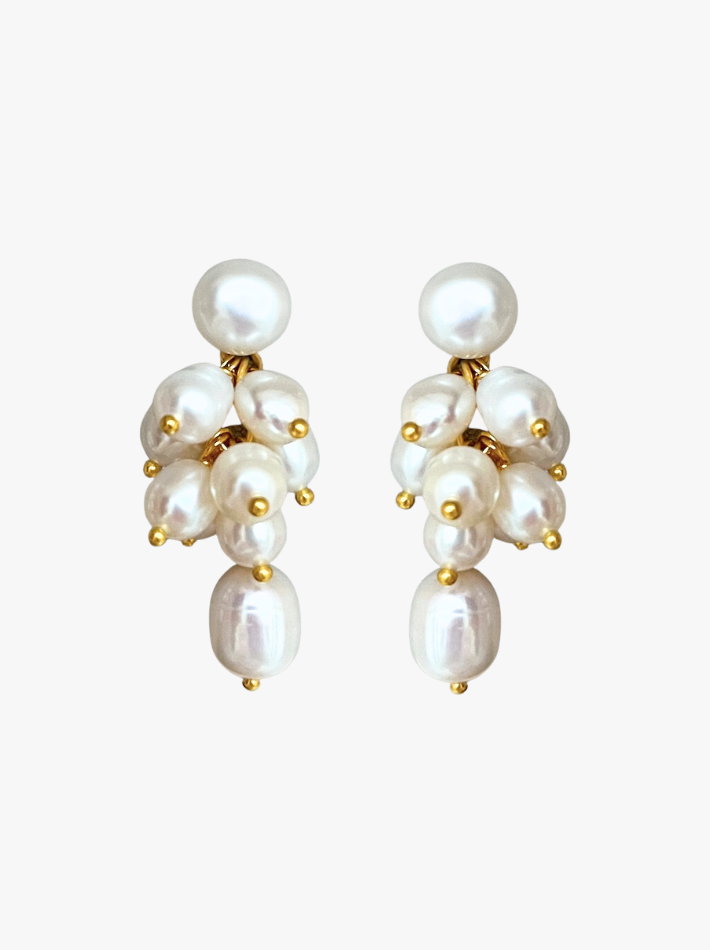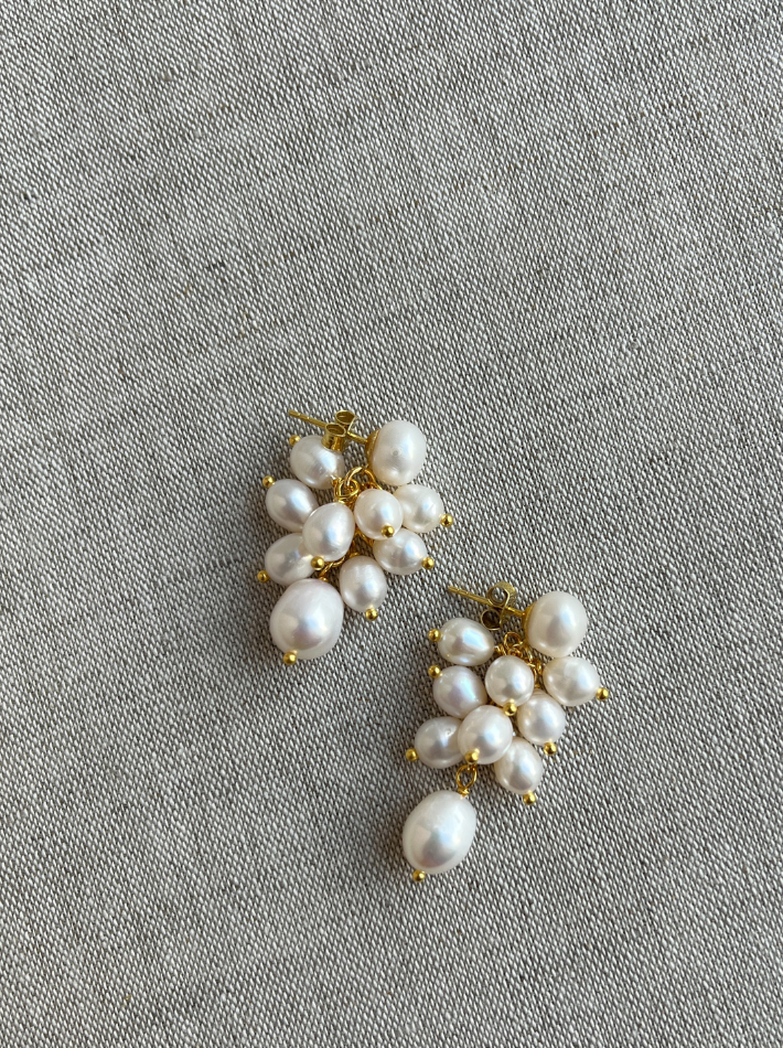Mie Pearl earrings are handmade and have a fine mix of large and small pearls. The earrings have a beautiful cluster of pearls and brighten up any outfit.
