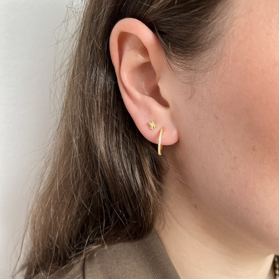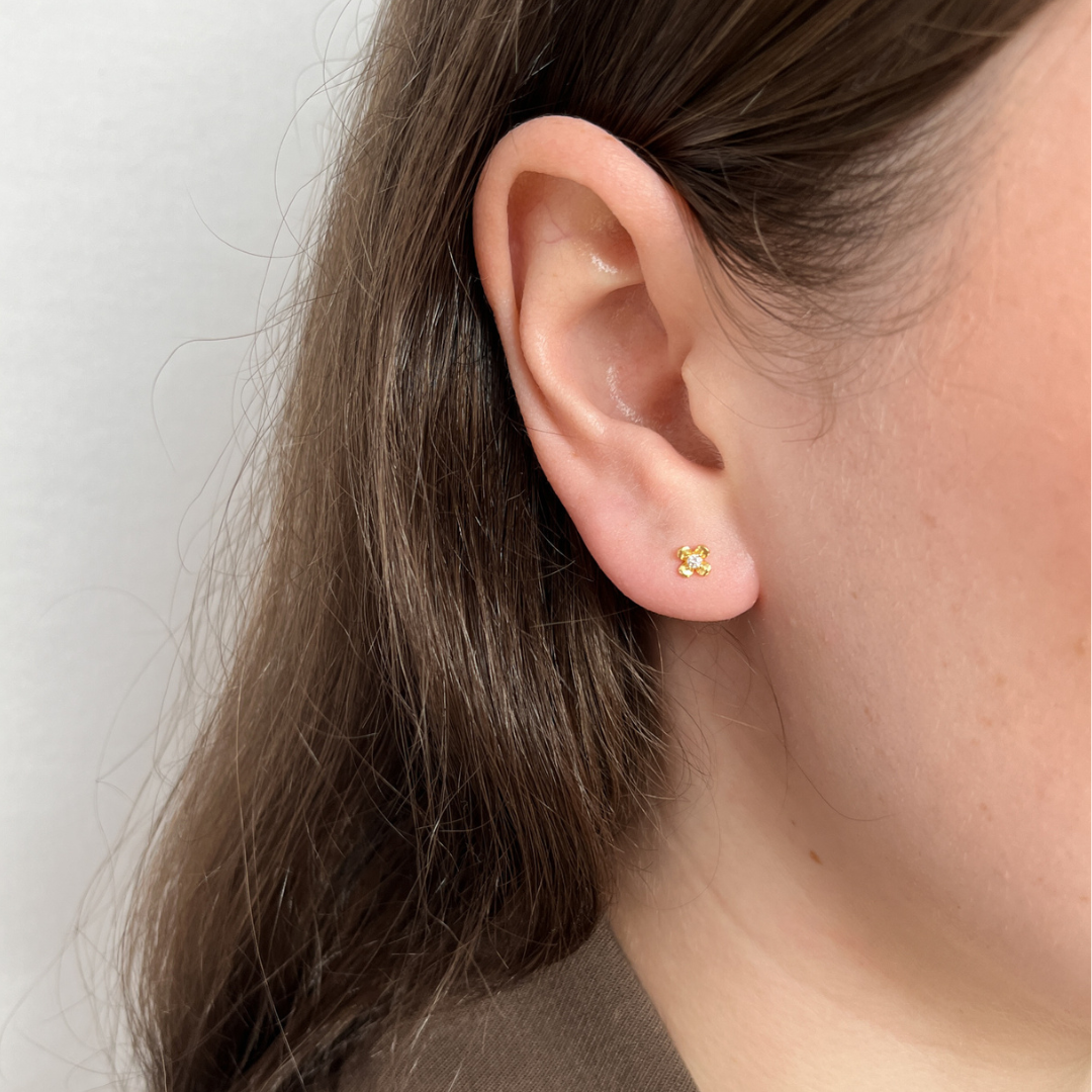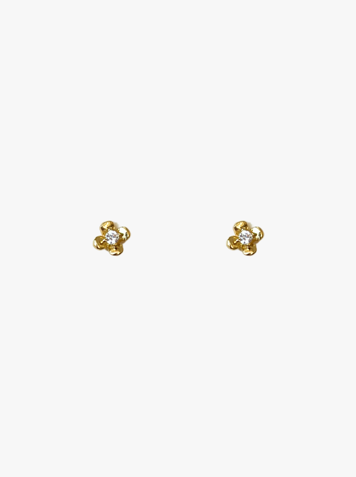 Simple og små ørestikkere der tilføjer en smuk glans til dit look. Ørestikkerne er formet som en lille blomst med en zirkonia sten inde i midten.