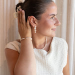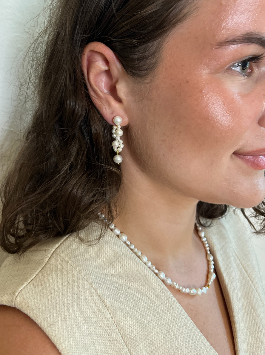 Inspireret af havets bølger skabes dette smukke design med snoede ferskvandsperler, der omfavner et par større perler. Et elegant udtryk af bevægelse og balance – opkaldt efter gudinden, der forener styrke og visdom.