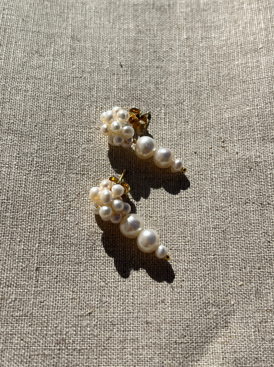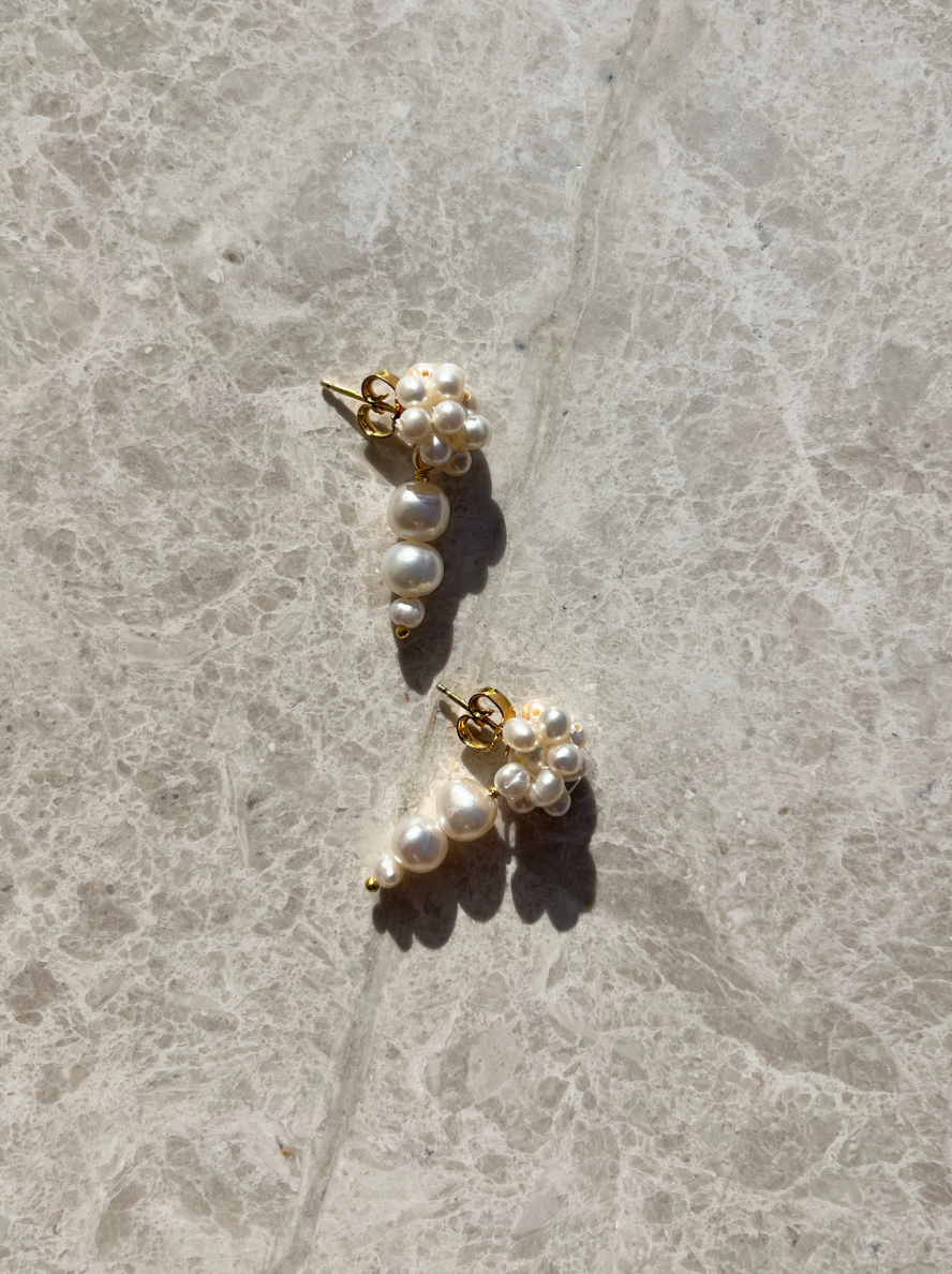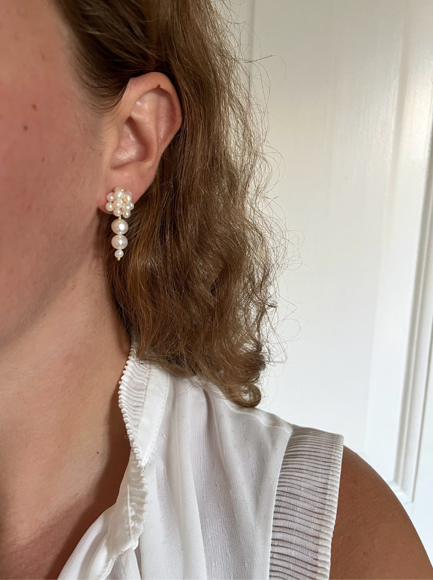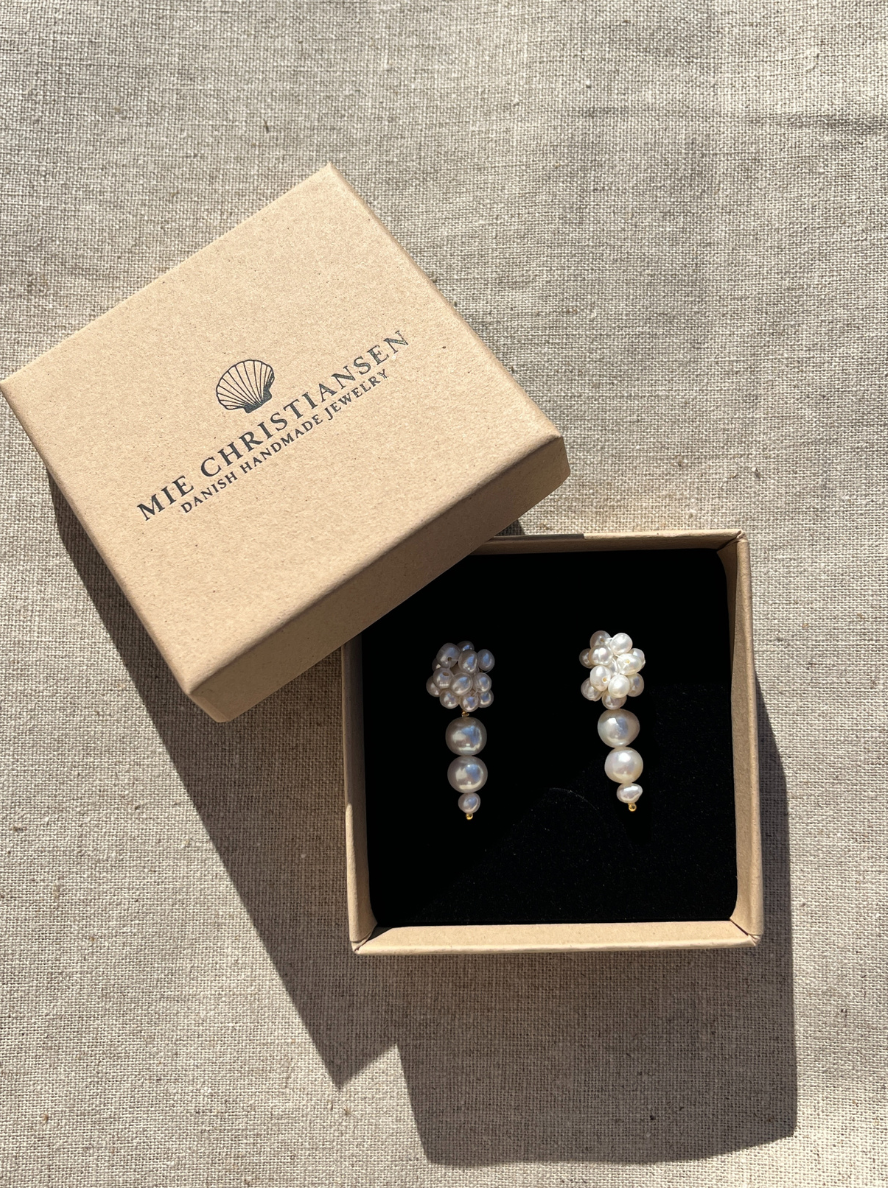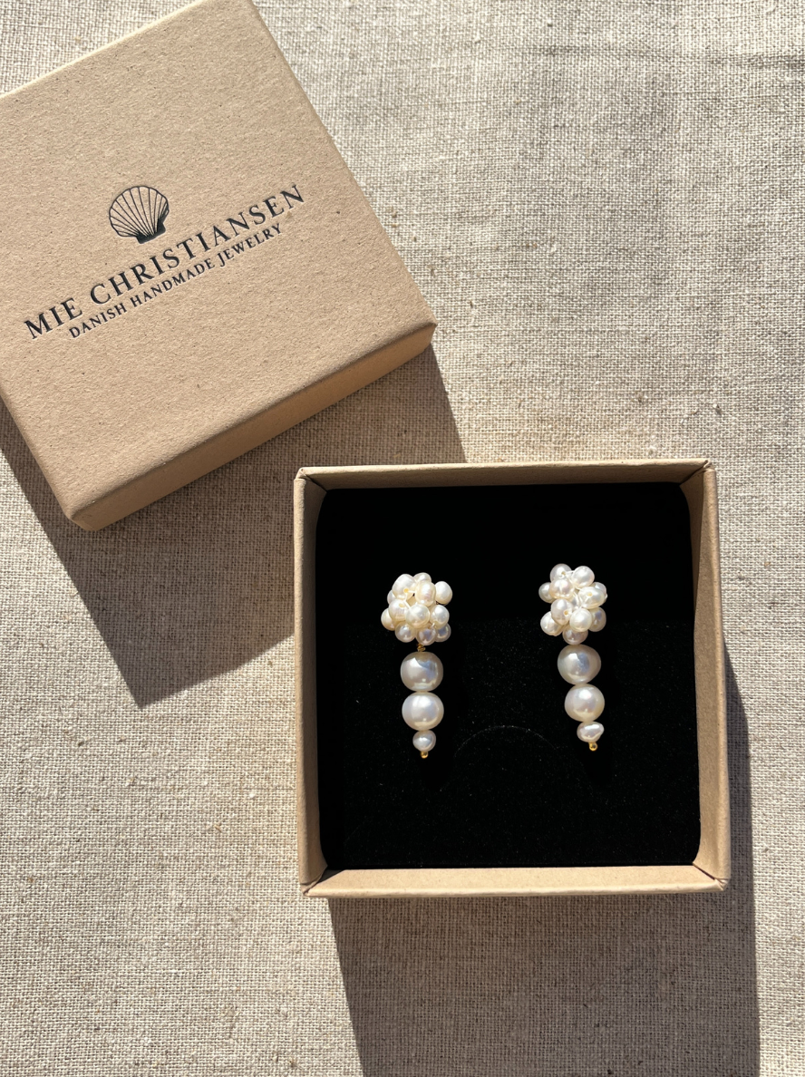 Disse elegante ørestikkere er håndlavet med ægte ferskvandsperler, der danner en smuk og tidløs silhuet. De delikate perler skaber et sofistikeret udtryk, der passer perfekt til både hverdag og festlige lejligheder. Et raffineret smykke, der fremhæver din naturlige skønhed.