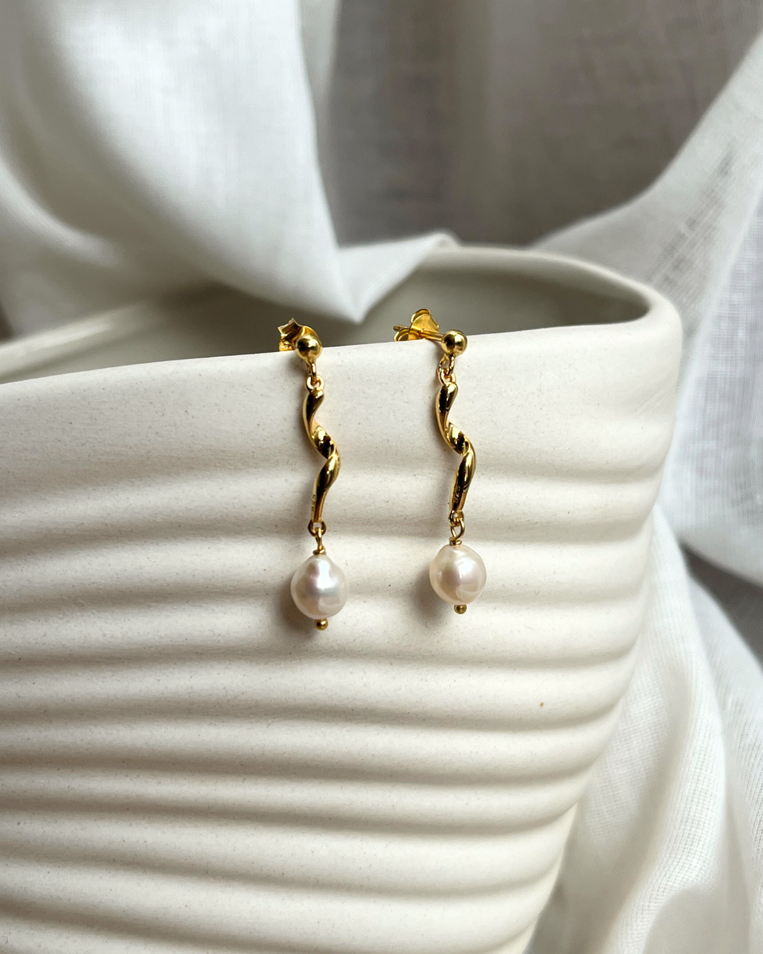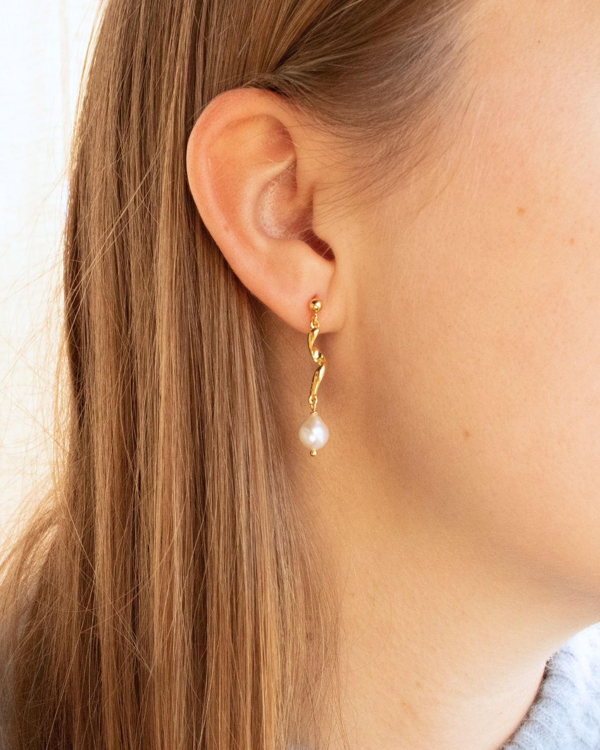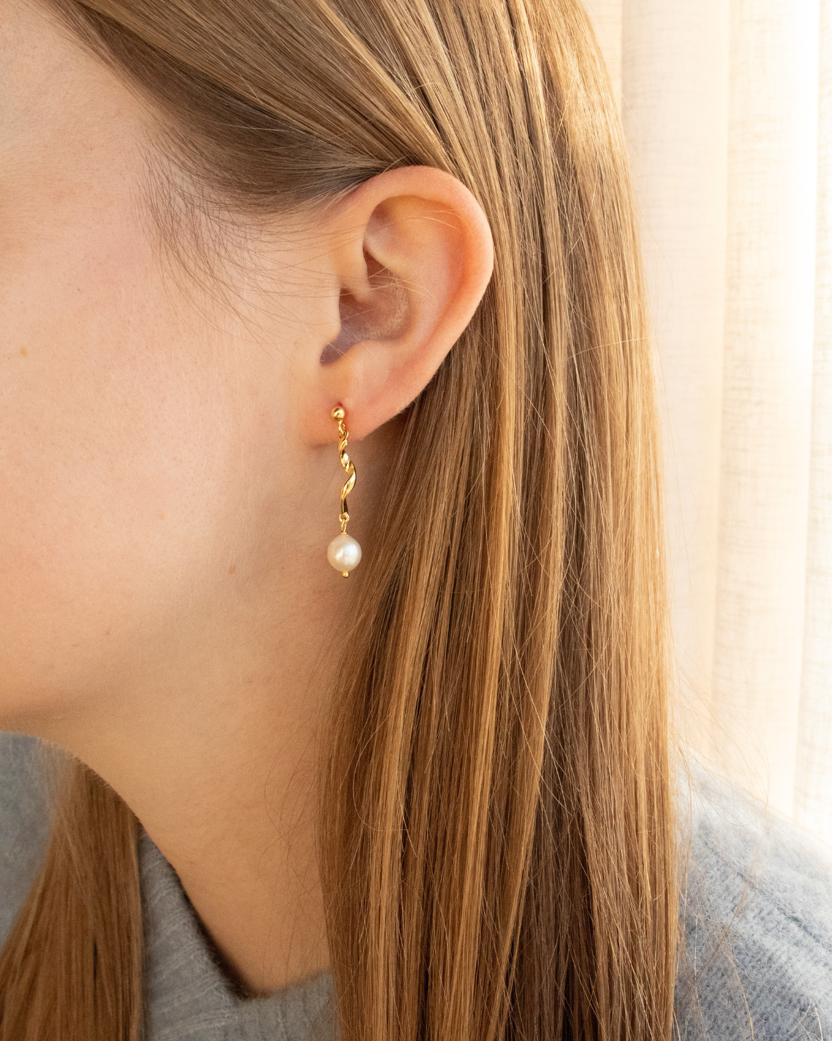 Twistet perleørestikkere med smukke ovale ferskvandsperler på en kugleørestik. Eksklusive og feminine.