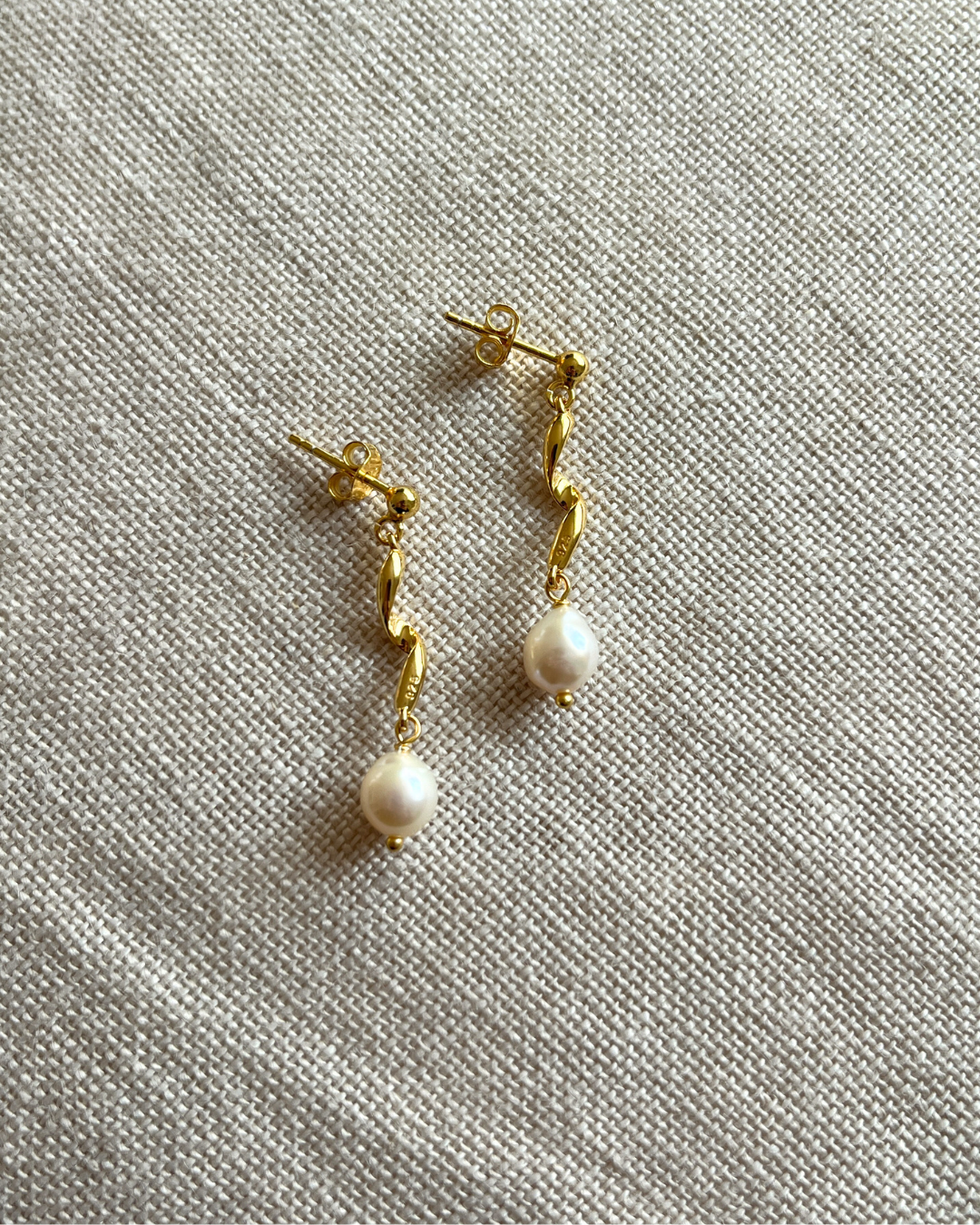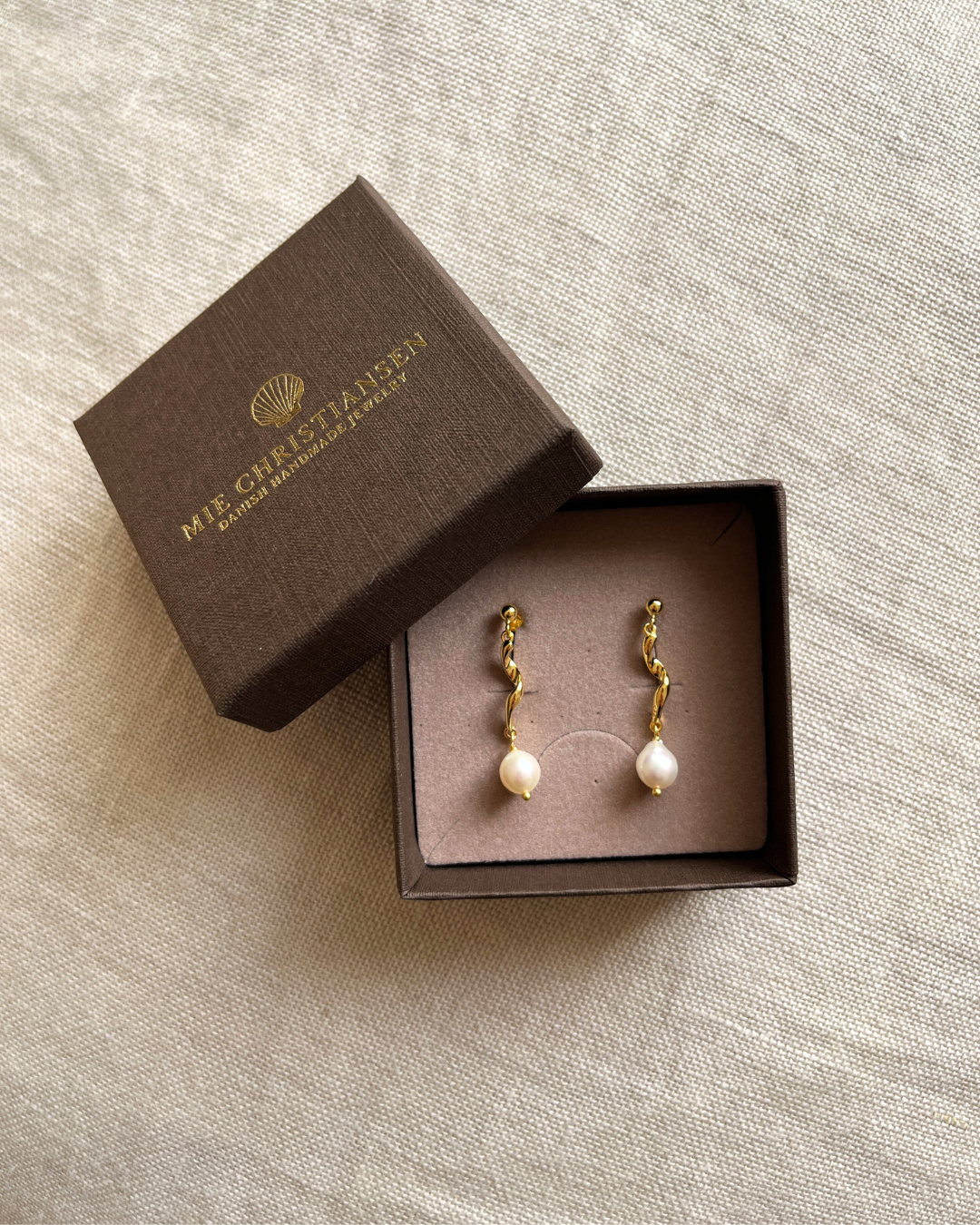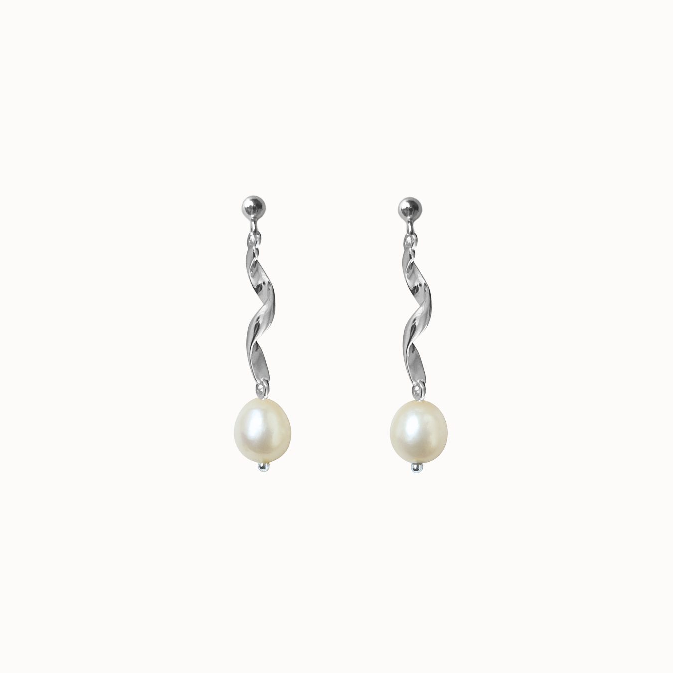 Twistet perleørestikkere med smukke ovale ferskvandsperler på en kugleørestik. Eksklusive og feminine.