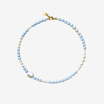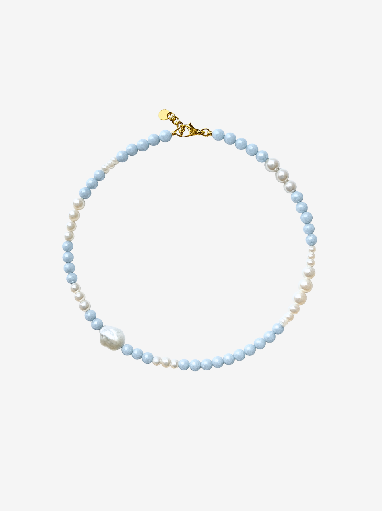 De blå kalcedonperler spejler lyset fra det græske øhav og giver smykket et roligt og legende udtryk.