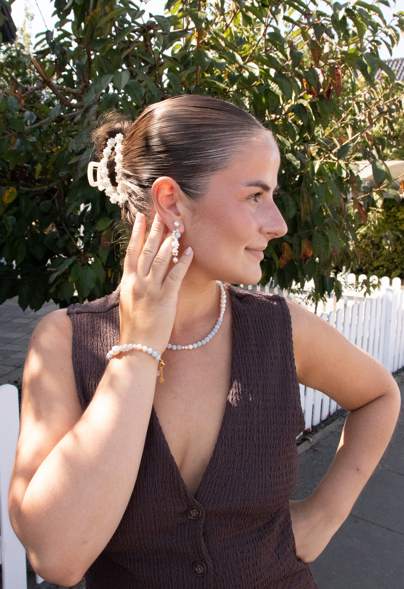 Vores formål er at skabe elegante og tidløse smykker, som du kan anvende hele året rundt. Derfor har vi fokus på den flotte hvide ferskvandsperle, som hovedelementet i vores smykker. Perlerne er naturlige og unikke med sine forskellige former og størrelser.